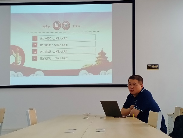 石兵副经理以《“学思想、强党性、重实践、建新功” 牢牢把握12字总要求修好主题教育这门必修课》为主题,结合日常教学、科研、管理工作,分享自己的学习心得,并要求大家坚持“学思用贯通、 知信行统一”,努力在以学铸魂、以学増智、以学正风、以学促干方面取得实实在在的成效。