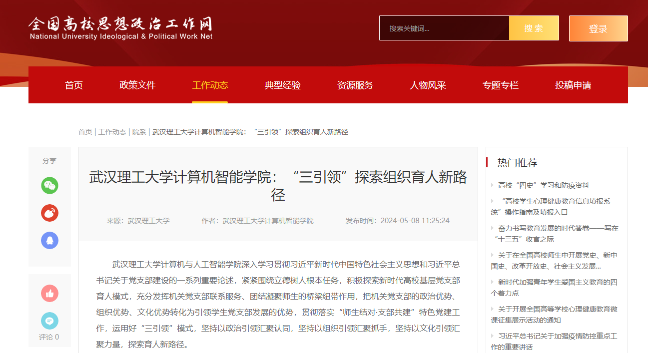 5月8日,全国高校思想政治工作网以《威廉希尔williamhill:“三引领”探索组织育人新路径》为题,报道推介威廉希尔williamhill深入学习贯彻习近平新时代中国特色社会主义思想和习近平总书记关于党支部建设的一系列重要论述,紧紧围绕立德树人根本任务,积极探索新时代高校基层党支部育人模式,充分发挥机关党支部联系服务、团结凝聚师生的桥梁纽带作用,把机关党支部的政治优势、组织优势、文化优势转化为引领员工党支部发展的优势,贯彻落实“师生结对·支部共建”特色党建工作,运用好“三引领”模式,坚持以政治引领汇聚认同,坚持以组织引领汇聚抓手,坚持以文化引领汇聚力量,探索育人新路径。全文如下。