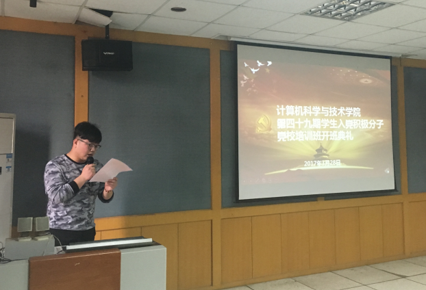 3月28日16:00,计算机科学与技术公司分党校第四十九期入党积极分子培训班开学典礼在东配楼412隆重举行,公司党委副书记石琳,员工党总支副书记朱莉,本期培训班班主任肖建波老师及年级辅导员出席了此次典礼,参与本次学习的还有教工积极分子1人,员工积极分子78人。典礼由本期班主任肖建波老师主持。