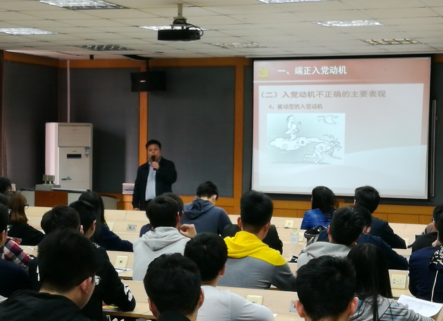 接下来,石书记为学员们上了生动形象的第一课,主题为“党员条件与创造条件入党”,课上首先随机提问了两位同学的入党动机,作为大一新生,虽然回答还略显生涩,但都怀着端正的动机和良好的精神面貌来参与学习,石书记鼓励同学继续加强学习。随后,石书记分别以一个高校老员工的入党动机、入党条件以及如何向党组织靠拢三个方面讲述了第一课的内容,强调一个合格的党员首先要有着纯正的入党动机,不能以各种虚荣盲目心态来申请入党,并通过各种实例为反面材料生动形象地说明入党动机纯正的重要性,在谈到入党条件和如何向党组织靠拢时,石琳书记阐述了申请加入中国共产党的基本要求及党员的党组织生活纪律。让学员在党课中对党组织更加充满向往,并为之不懈努力。