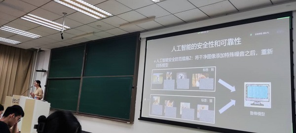 讲座中,龚老师深入浅出地介绍了深度学习技术在不同领域的应用案例与其可靠性的分析,并特别强调了对抗攻击带来的安全性挑战。通过对一些人工智能的失败案例进行简明的阐述和详细的分析,她向全体同学阐述了深度学习模型的漏洞问题,强调了防止这些漏洞带来的财产损失甚至威胁人生安全的重要性。