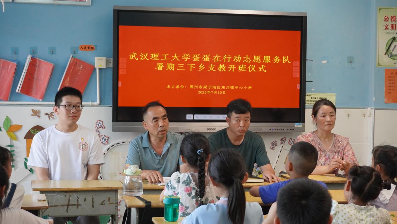 “当我第一次来到东沟镇公司的时候,我一眼就看到校园走廊墙壁上写着这么一句话:“让我们成为温暖的大海,融入每一滴汇聚在我们这里的海水。”这既是支教老师们践行立德树人根本任务的准则和路径,也回答了很多人问我们为什么要来支教这个问题。我一直认为支教是一个“良心活”,身处最简陋的环境,完成最崇高的事业。伟大的时代赓续伟大的事业,这既给我们支教团队员们提出了很高的要求,也给了队员们莫大的鼓舞。我们的行动仿佛犹如江水湖海的每一支支流,我们汇聚了千万露水星光,把露水引入了汪洋。”团委石林副书记在典礼结束后的采访中如是说道。作为带队老师,他全程参与了长风支队队员们第一天的教学活动。