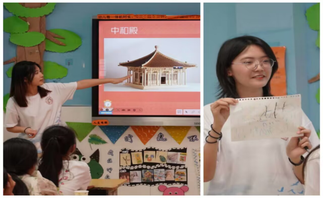 作为2023年“圆梦工程”服务农村未成年人传承优秀传统文化志愿服务团队的一支,在中央文明办三局、团中央青年志愿者行动指导中心和中国青年志愿者协会秘书处的号召下,长风支队弘扬中华优秀传统文化的行动正在紧锣密鼓地进行着。“故宫屋脊上有哪些神兽?”“为什么故宫琉璃瓦上没有鸟?”“同学们可以拿起画笔尽情地描绘你心目中的乡村四月。”……从庄严绮丽的故宫建筑,到清新明快的乡村绝句,志愿者们寓教于乐,用专业的态度和热情的笑容一点一点地点燃着小朋友们对古老中华民族文化的好奇和向往。