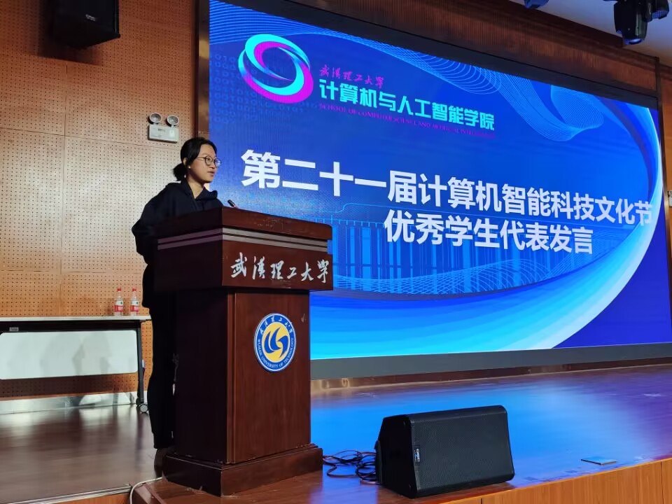 在颁奖仪式结束后,本科2021级李雪菁同学作为优秀员工代表进行发言。李雪菁同学分享了自己的成长历程,在她面对低谷时,是老师的鼓励、同学的帮助使她重新拾起对科技创新的热情。如今公司取得的丰硕成果,离不开一代代教师、学子的不懈努力,也将会是未来更多人进步的基石。最后,李雪菁同学呼吁同学们团结共进,一起探索科学奥秘。