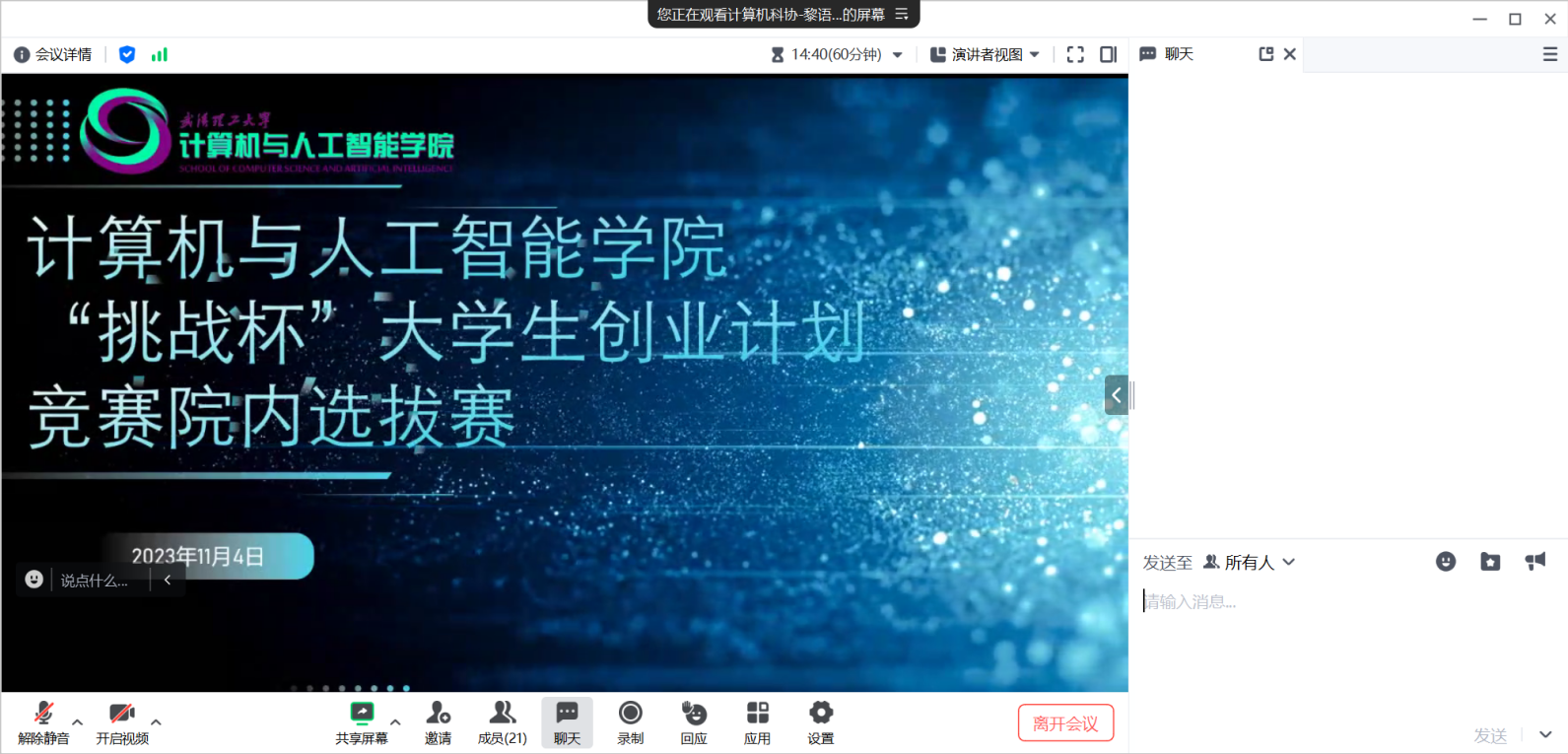 本次遴选赛线上展开,每个团队限时10分钟,汇报人展示讲解小组项目,再由评委老师点评、指导、打分,选拔公平公正。本次比赛,不仅展现了各团队员工在科技领域的智慧与创新,更体现了他们对于社会热点问题的关注和思考。在点评环节,评委老师对相应团队的项目指出了不足之处,给出了后续的改进方向,并对答辩内容和汇报材料提出了宝贵的意见。赛后入选团队还将潜心打磨自己的项目材料和汇报技巧,为后续的校赛做好充分的准备。