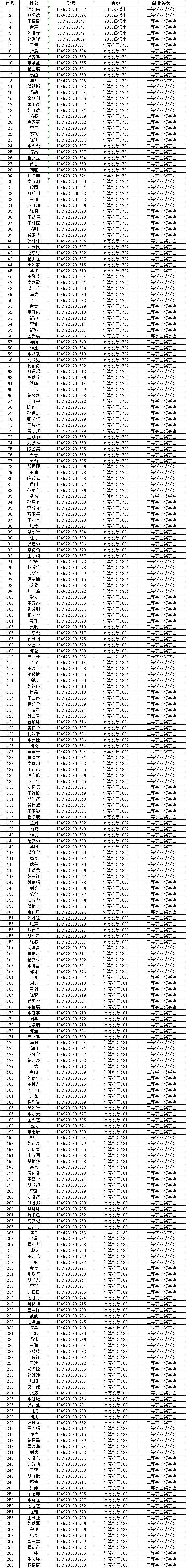 计算机科学与技术公司2019年硕士、博士研究生学业奖学金名单公示