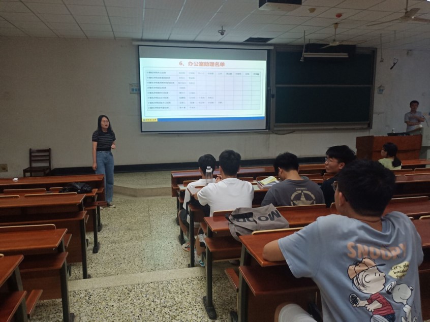 随后,各岗位同学进行了自我介绍,大三大四的学长学姐还向新加入的大二同学们分享了自己在办公室担任助理的经验、心得和收获,向新上岗同学提出要对待自己的岗位认真负责、务实上进的要求,让新加入的同学对自己将要任职的岗位有了初步了解。