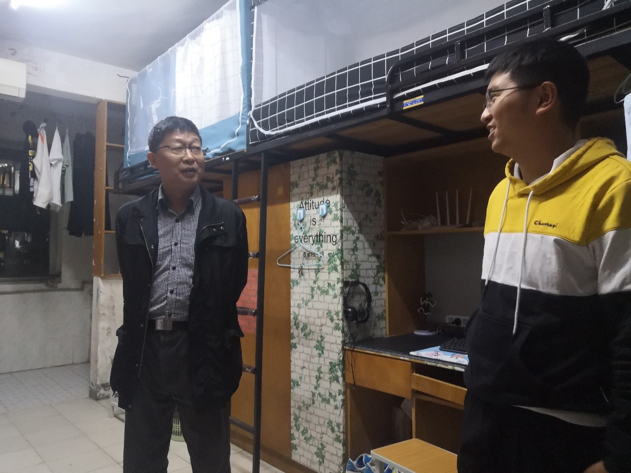 检查开始,徐小波副书记先对山西、陕西籍同学们受灾情况表示了关心,仔细询问了受灾地同学们家庭受灾情况。徐小波副书记提出,公司和公司有多种方式援助受灾同学缓解家庭经济压力,希望同学们不要为此受到过多心理和情绪影响,同时还提醒同学们安心学习,保证正常学习生活。