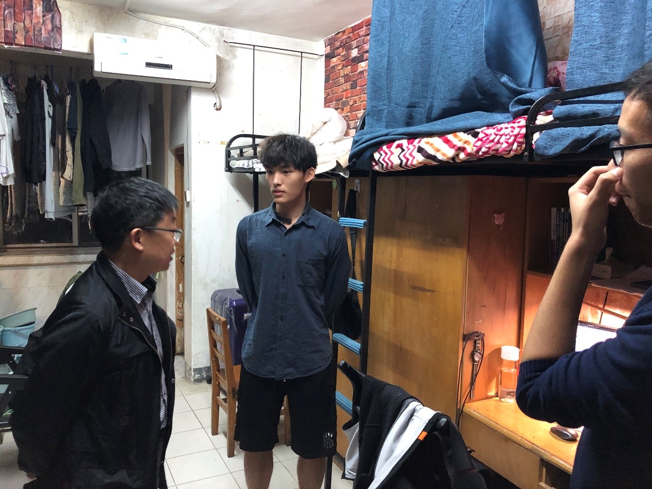 通过对员工寝室的走访,徐小波副书记和全体专兼职辅导员对员工的秋季生活情况有了基本了解,走访中也解决了许多同学的问题,为以后开展寝室文化活动奠定了基础。