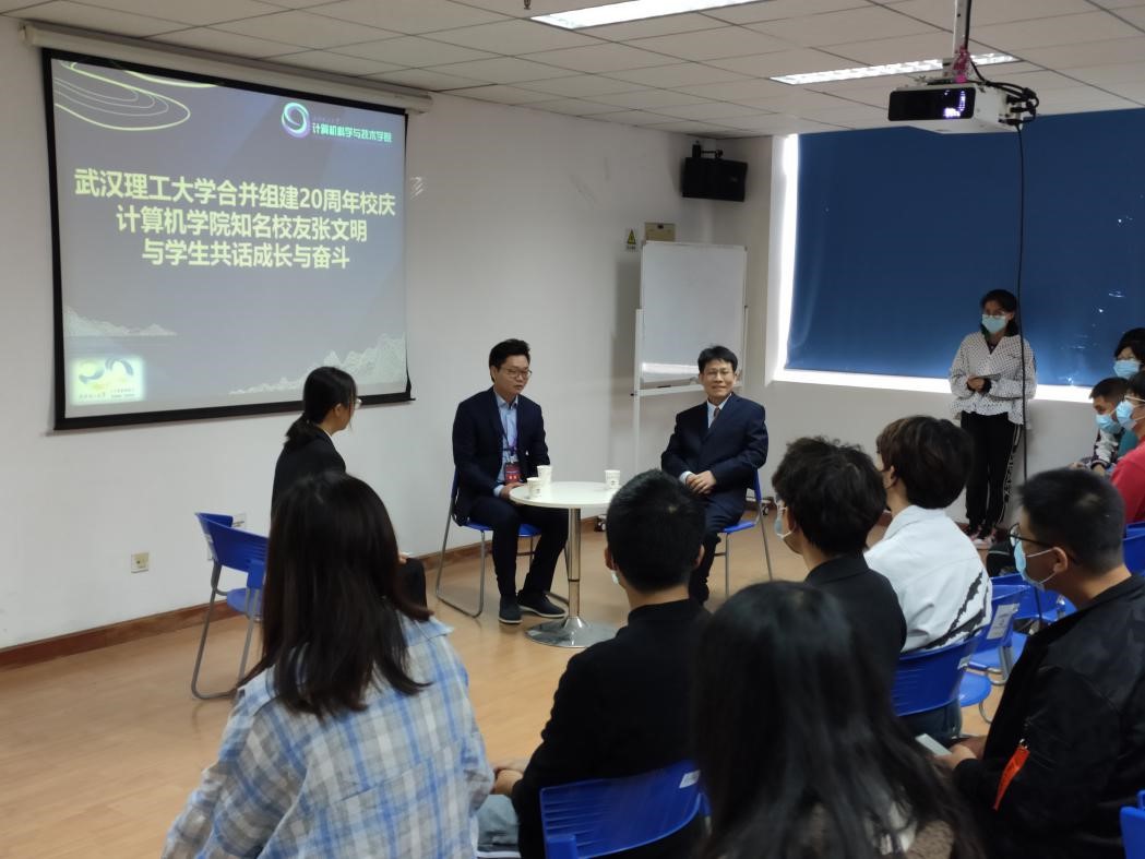 2020年10月7日上午,应邀回校参加后疫情时代威廉希尔高质量发展战略合作暨合并组建二十周年大会的公司员工斗鱼直播联合创始人兼CEO张文明在鉴湖1207会议室与计算机科学与技术公司师生共话成长与奋斗。公司熊盛武经理、张晓寒书记及师生代表参加。